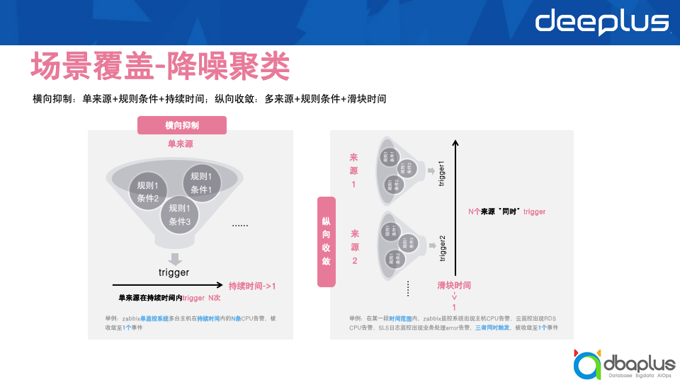 我们支持对单个来源的事件、告警,通过定义的规则进行收敛,比如Prometheus报警出一个服务在某个持续时间内持续报了N条一样的告警信息,平台会收敛到一个事件中去。