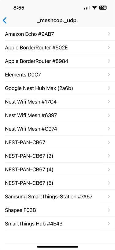 使用Discovery应用,可以看到网络上的所有Thread边界路由器,包括来自Nanoleaf、Google、三星、Apple 和 Amazon 的设备。