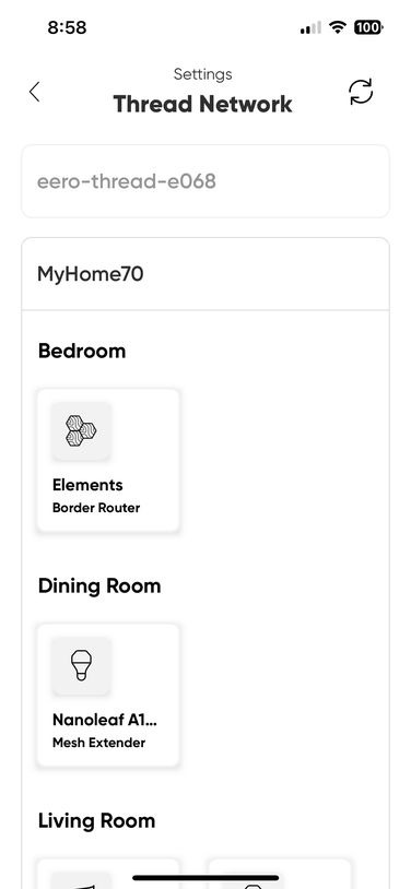 例如,我家里有多个边界路由器,包括Eero Wi-Fi路由器、Echo第四代智能扬声器、SmartThings集线器、Apple TV、HomePod Mini、两个Nest Hub和一些Nanoleaf灯。但是,我没有使用一个具有多个故障保护功能的强大Thread网络,而是有五个,是的,五个独立的Thread网络,所有网络都相互竞争,吞噬我尝试添加到网络中的任何Thread设备。而且,一旦添加成功,就无法始终看到其他网络上的Thread设备或与之通信,从而破坏了我的智能家居。
