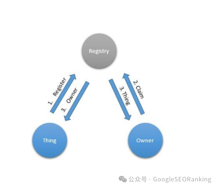这通过使用网络上对物品和所有者都可用的物品注册表来实现。事物向注册中心注册它们的概念身份,所有者仅使用它们的概念身份来声明这些事物。如果成功,每个人的网络身份将被发送给另一个人,然后双方都知道如何相互通信。XMPP的扩展支持这种模式。