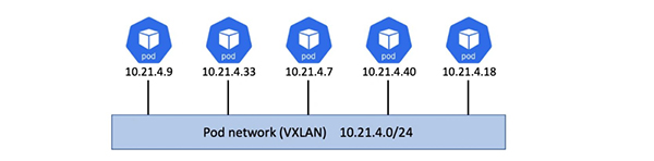 Kubernetes 应用运行在容器之中,容器处于 Pod 之内。 每个 Pod 都会附着在同一个大的扁平的 IP 网络之中,被称为 Pod 网络(通常是 VXLAN 叠加网络)。 每个 Pod 都有自己的唯一的 IP 地址,这个 IP 地址在 Pod 网络中是可路由的。上述三个因素结合起来,让每个应用(应用的组件和服务)无需通过 NAT 之类的网络过程,就能够直接通信。