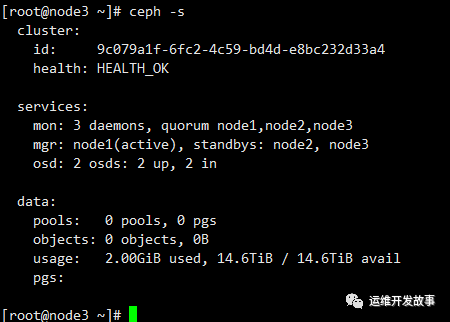 最后查看ceph运行状态,我只添加了两个osd。