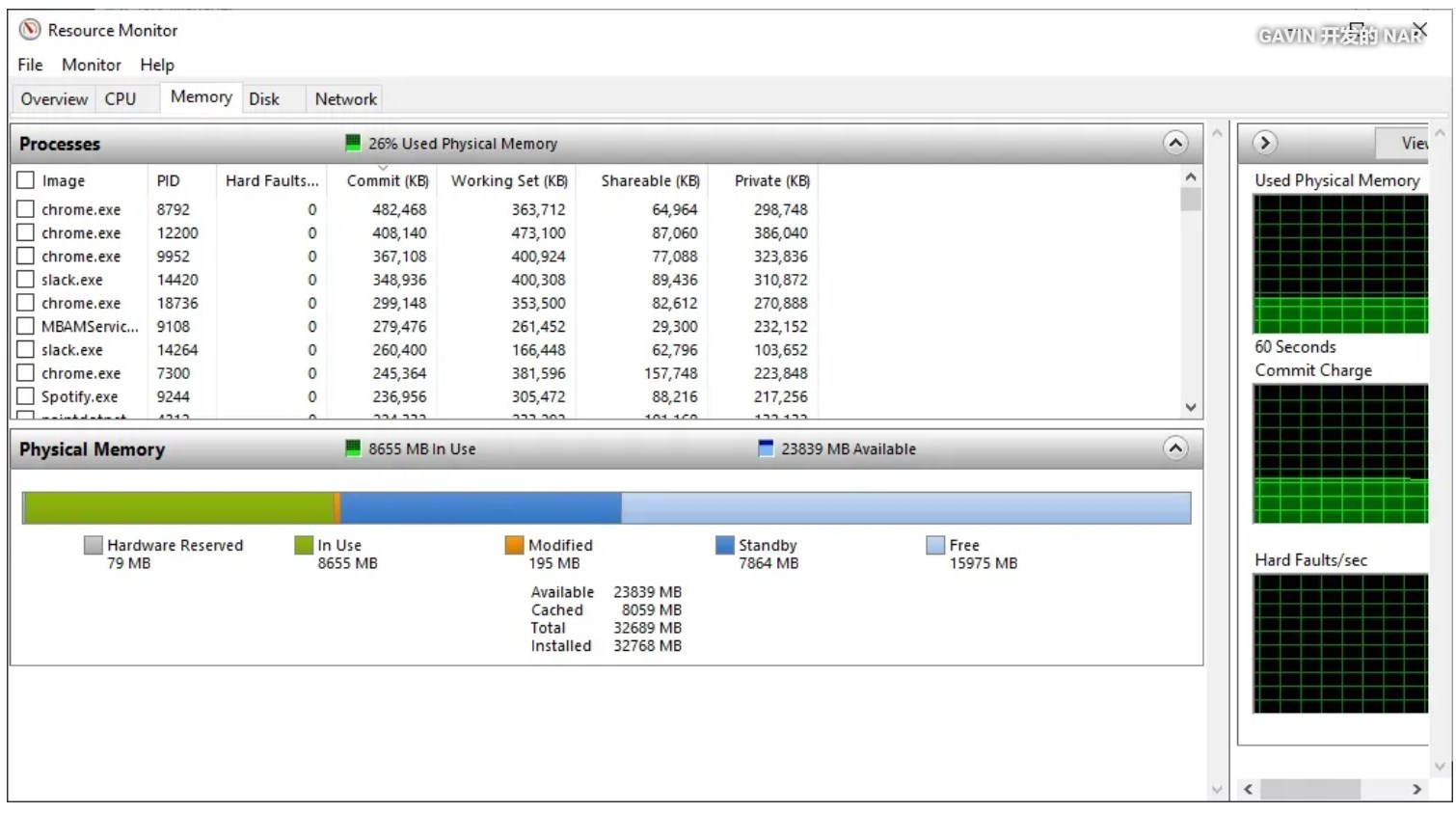 Windows 资源监视器还可以通过提供系统资源的实时数据来帮助您了解内存泄漏问题。