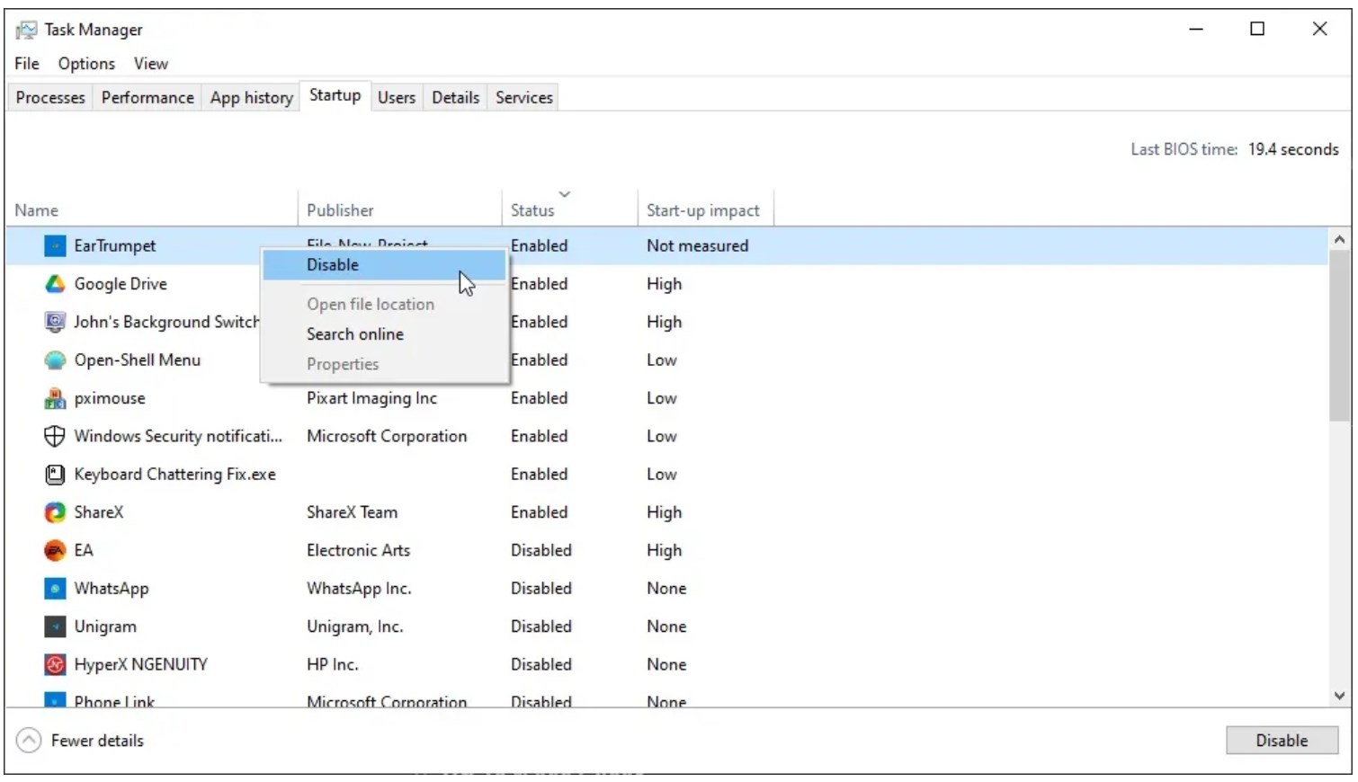 有时,启动时运行的程序可能会导致内存泄漏。要解决此问题,请禁用该应用程序以确保它在启动系统时不会再引起问题。