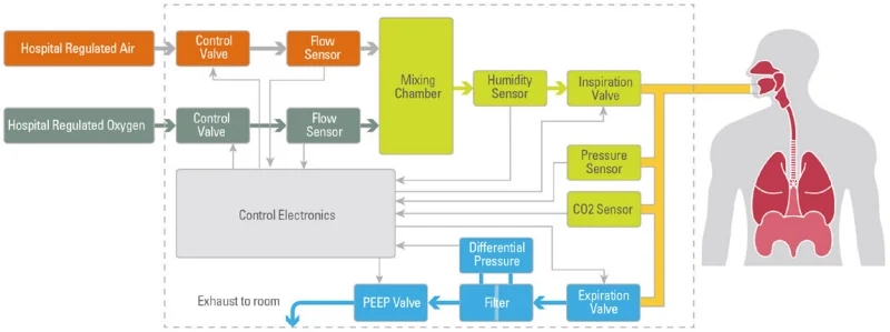 图5.典型医用呼吸机的框图。(图片来源:TES)
