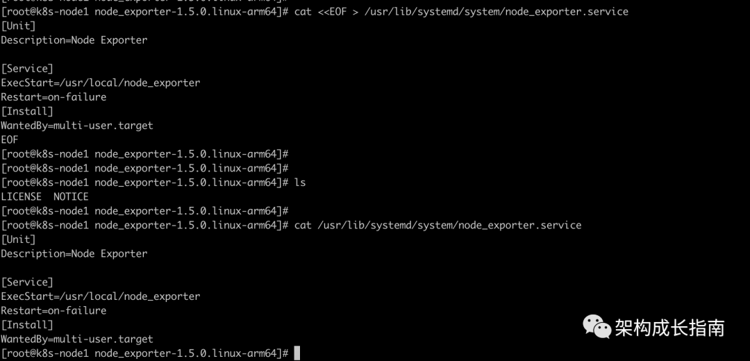 cat <<EOF > /usr/lib/systemd/system/node_exporter.service [Unit] Descriptinotallow=Node Exporter [Service] ExecStart=/usr/local/node_exporter Restart=on-failure [Install] WantedBy=multi-user.target EOF1.2.3.4.5.6.7.8.9.10.