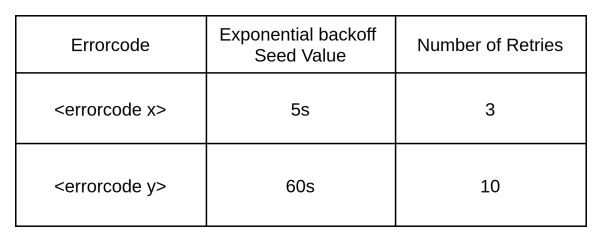 当应用程序出现重试类型的错误时,我们可以选择统一的“错误重试配置”方式,来进行微调处理。如下表所示,在基于事件的服务中,一旦基础设施组件出现可用性的缺失,我们需要通过预定义的反复重试机制,来及时确认运营商是否已及时修复。这往往比直接怀疑和处置由并发量请求所引发的问题可能性,要更加符合常理。