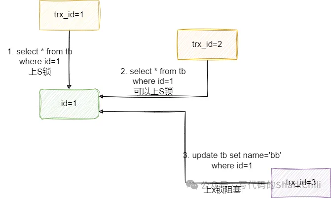 1. 详解共享锁和排他锁共享锁(Share Lock,S 锁):又称读锁,进行读取操作时会上的锁,上读锁之后的锁其他事务上读锁也没问题。