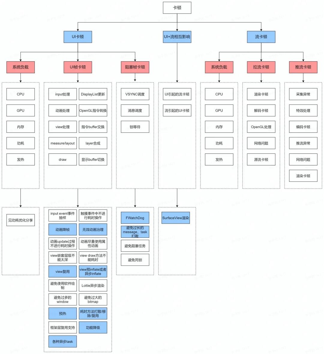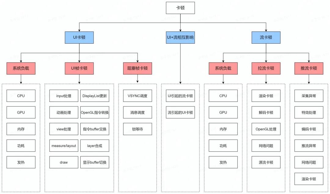 我们此处再整体整理并归类,为了更完备一些,这里将推流也放了上来。在一定程度上,我们遇到的所有卡顿问题,均能在这里找到理论依据,这也是指导我们优化卡顿问题的理论支撑。