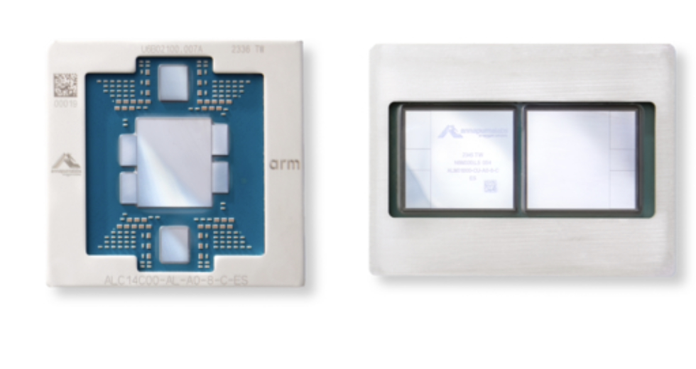 ▲ 左图为 Graviton4 芯片、右图为 Trainium2 芯片