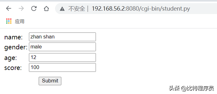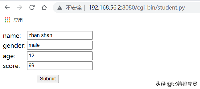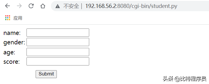 二、编写展示数据脚本cgi脚本要放在web根目录下的cgi-bin目录下,如果没有这个目录请先创建它,然后在cgi-bin目录下创建一个student.py文件,内容如下: