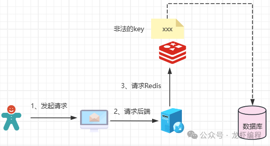 通常是由于攻击者输入非法或恶意构造的请求访问服务,由于Redis缓存的不存在,此时大量请求都是直接到达Mysql上。