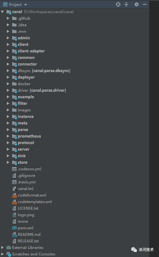 这里,我们使用Canal的源码进行测试,下载Canal的源码后,将其导入到IDEA中。