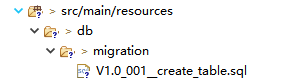 接下来在db/migration下新建一个迁移脚本(升级),文件名:V1.0_001__create_table.sql