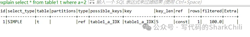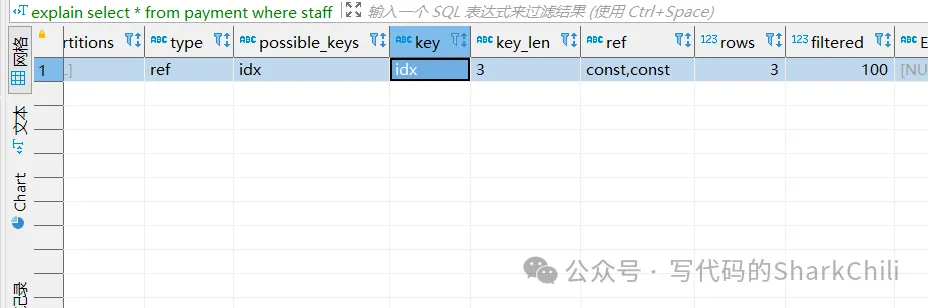 以下便是笔者的查询sql,可以看到执行计划走了索引。