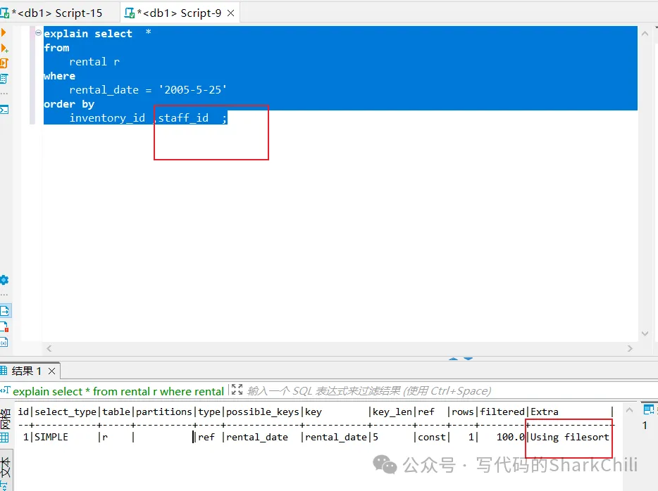 同样的排序时,如果用到了非索引的列也会使得排序变为文件排序: