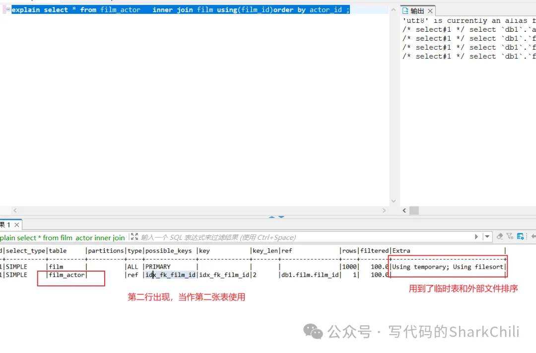 explain select * from film_actor inner join film using(film_id)order by actor_id ;1.
