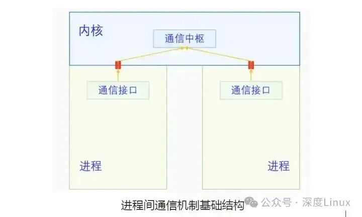 进程间通信机制由存在于内核空间的通信中枢和存在于用户空间的通信接口组成,两者关系紧密。通信中枢就如同邮局或基站,为通信提供核心机制;通信接口则像信纸或手机,为用户提供使用通信机制的方法。