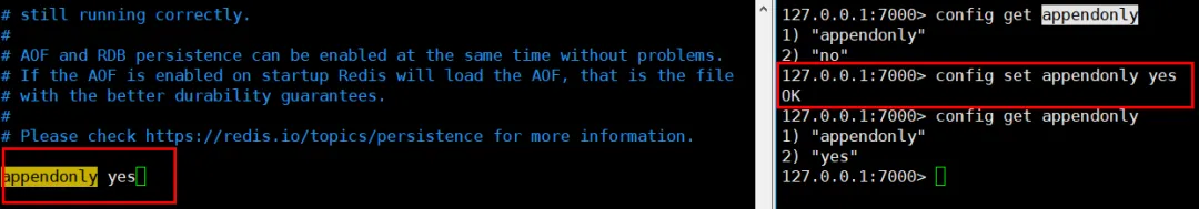 由于 AOF 功能开启后对 Redis 性能会产生一定影响,因此 AOF 功能默认是关闭的。我们可以通过修改 redis.conf 配置文件中的配置参数来开启 AOF 功能,还可以通过“config set”命令在线动态的开启和关闭 AOF 功能。