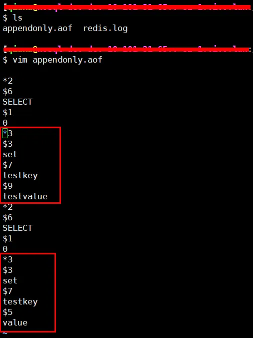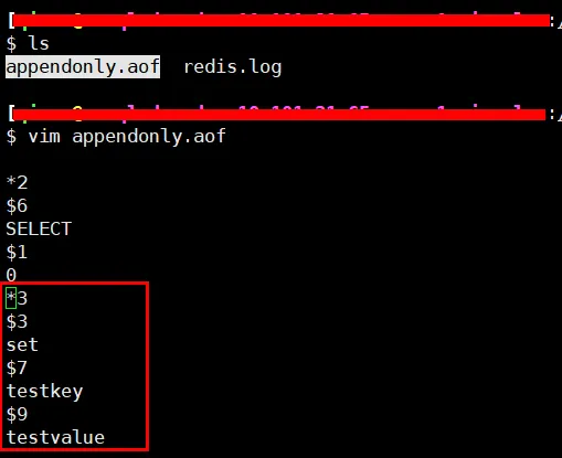 2.6 AOF 重写在上面我们向 AOF 文件中记录了一条 set 命令,如果此时我们对该 key 的值进行了更新,那么 AOF 文件中记录的日志是否也会随之更新呢?通过 AOF 文件我们可以看到,原先写入AOF 文件的 set 命令并没有发生改变,而是在 AOF 文件末尾追加了一条 set testkey value 命令。