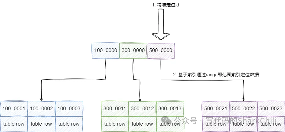 查看这条sql的执行计划可以发现,这条sql是直接通过索引直接定位id,避免走向叶子节点直接返回,再通过走索引的方式进行范围查询性能提升了不少。