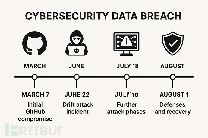 攻击时间线显示,UNC6395早在事件公开前数月就开始了系统性入侵。据Mandiant调查,该组织于2025年3月首次获取Salesloft的GitHub账户访问权限,并持续控制至2025年6月。这一长达三个月的初始入侵暴露出严重的安全监测失效。