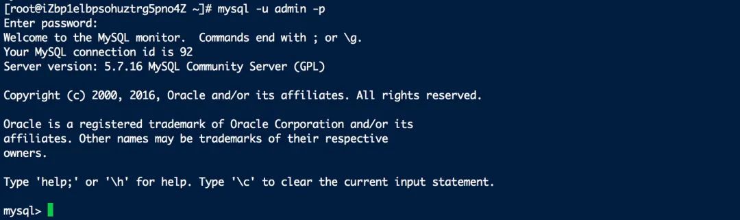 #登录mysql,此时还没有进入数据库,使用如下命令