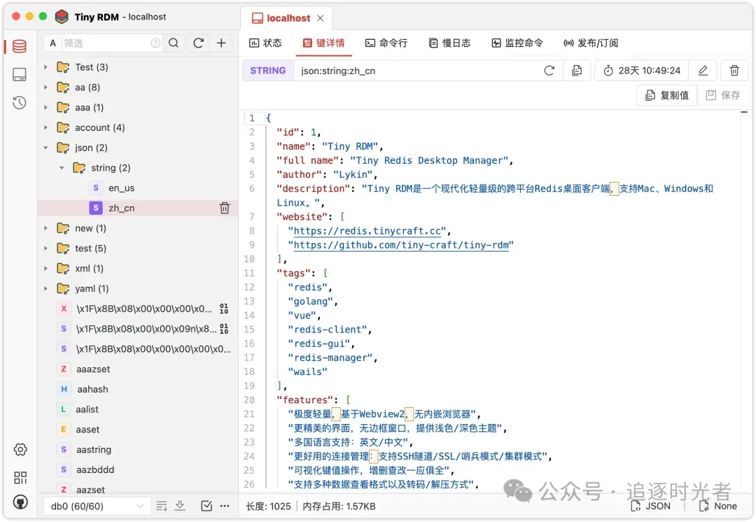 支持哨兵,集群,ssh通道,ssl认证,stream,subscribe订阅,树状视图,命令行,以及暗黑模式;支持多种格式化方式,甚至能够自定义格式化脚本,满足你的一切需求。