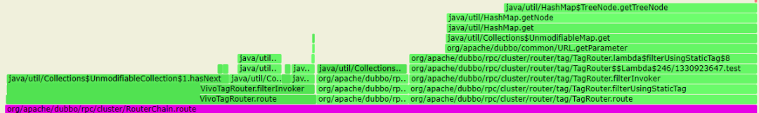 Dubbo框架,基于开源社区2.7.x版本定制化开发。在海量微服务集群的业务实践中,我们发现Dubbo有一些性能瓶颈的问题会极大影响业务逻辑的执行效率,尤其是在集群规模数量较大时(提供方数量>100)时,路由及负载均衡方面有着较大的CPU消耗,从采集的火焰图分析高达30%。为此我们针对vivo内部常用路由策略及负载均衡进行相关优化,并取得了较好的效果。接下来主要跟大家分析一下相关问题产生的根源,以及我们采用怎样的方式来解决这些问题。当前vivo内部使用的Dubbo的主流版本是基于2.7.x进行相关定制化开发。