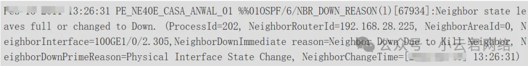 由此确认,接口状态的不稳定导致了OSPF邻居的反复振荡:接口DOWN时邻居关系中断,接口UP后重新协商建立,进而引发对端设备的邻居状态也随之变化。