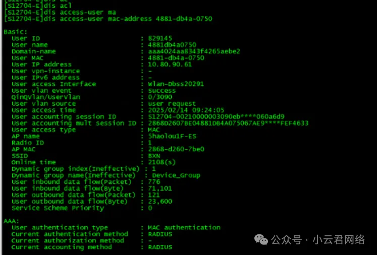 检查DHCP服务器的地址释放与分配机制;排查交换机上的用户在线记录与ARP表项更新逻辑;分析终端的在线状态及地址续约行为。3. 排查分析(1) 第一步:确认DHCP服务器与设备状态差异