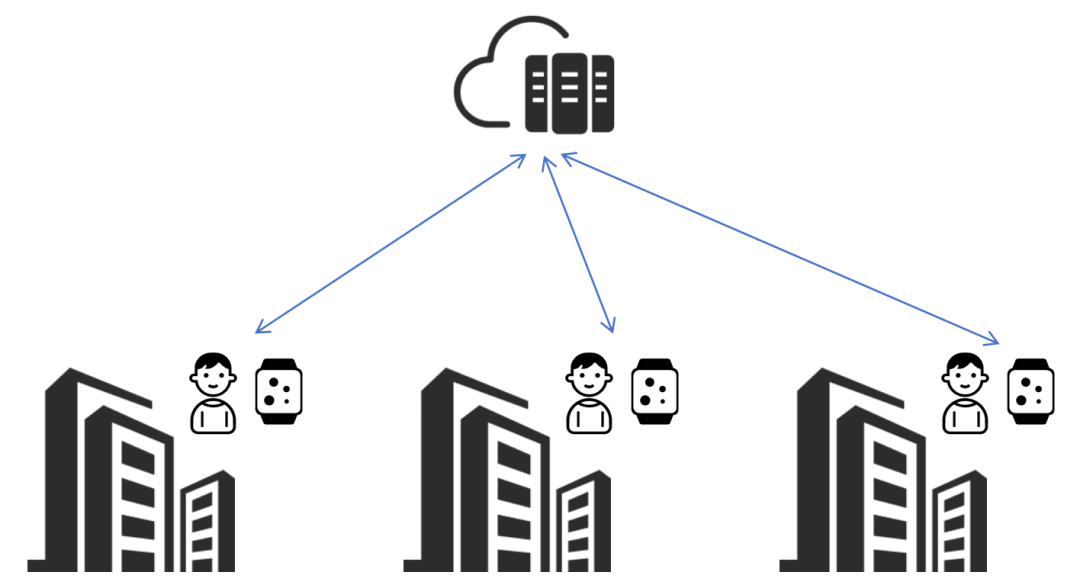 最开始,算法和模型部署在本地(在手表上)。用户自己使用,越用越精准。