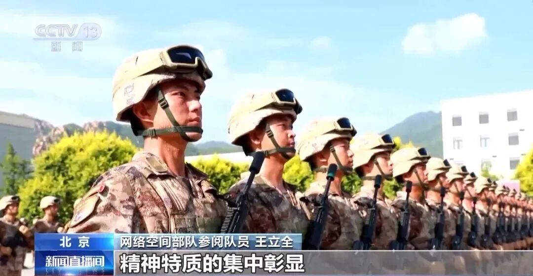 网络空间部队参阅队员王立全在此前接受央视新闻采访时表示:网络空间部队军旗上的那抹赛博灰,是我们兵种“奋战无声、制胜无形”精神特质的集中彰显。中国军人向往和平,更要用自己的能力守护和平。我们既要用铿锵步伐彰显信心决心,更要用我们的能力实力,在新域战场,捍卫国家网络空间的和平与安宁。