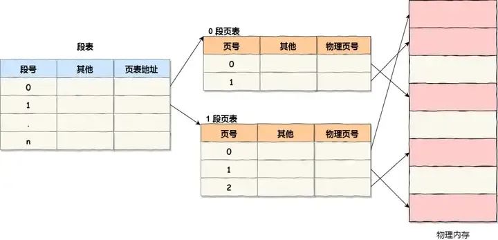现代操作系统一般都采用段页式存储的方式来实现虚拟内存和物理内存的映射。段页式存储,顾名思义是一种结合了段式存储管理和页式存储管理优点的内存管理技术。在段页式存储中,程序的逻辑地址空间被划分为若干个段,每个段再被划分为若干个固定大小的页。同时,物理内存也被划分为与页面大小相同的物理块。