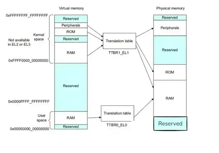 要做到这一点,虚拟内存系统中的硬件必须提供地址转换,即将处理器发出的虚拟地址转换为主内存中的物理地址。MMU使用虚拟地址中最重要的位来索引转换表中的条目,并确定正在访问哪个块。MMU将代码和数据的虚拟地址转换为实际系统中的物理地址。该转换将在硬件中自动执行,并且对应用程序是透明的。除了地址转换之外,MMU还可以控制每个内存区域的内存访问权限、内存顺序和缓存策略。