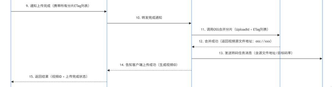 3. 客户端完成上传,触发分片合并(对应时序图 9-15 步)