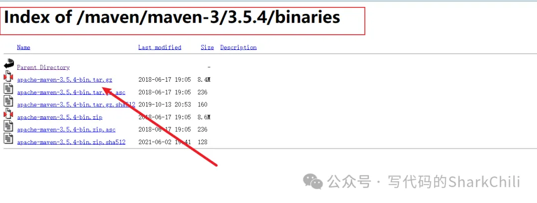 打开该地址,即可看到不同版本的maven包,以笔者为例,选择了3.5.4这个版本,直接点击下载即可: