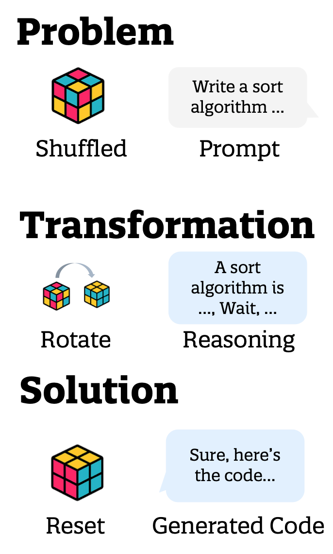 以人类的魔方游戏为例,“问题” 是一个被打乱的魔方,“推演” 是每次对魔方转动的策略,“解决方案” 则是重排的魔方。对于代码智能体来说,“问题” 是用户提出的请求,“推演” 是模型的中间推理步骤,而 “解决方案” 则是生成的代码片段。