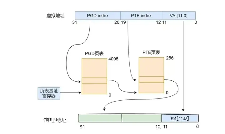 在Linux内核中,页表是用来管理虚拟内存和物理内存之间映射关系的数据结构。Linux采用了两级页表(two-level page table)的结构,具体包括以下几个部分: