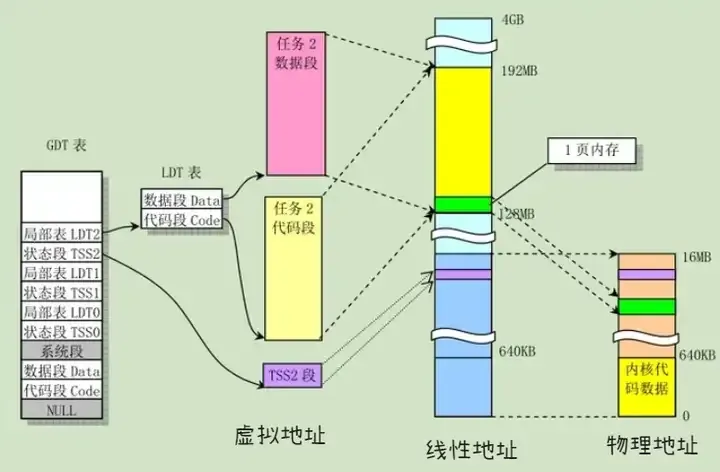 因此,线性地址和虚拟地址之间存在一定的关系。在32位x86架构中,线性地址是由段选择符和偏移量组成的,而偏移量部分直接对应了虚拟地址的偏移量部分。同时,在进行内存访问时,CPU会自动执行线性地址到物理地址的转换,并且可以利用硬件支持来提高访问速度。