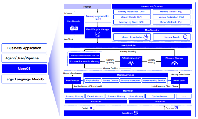 该系统名为MemOS,将记忆视为可以随时间的推移加以调度、共享和改进的核心计算资源,类似传统操作系统管理CPU和存储资源那样。