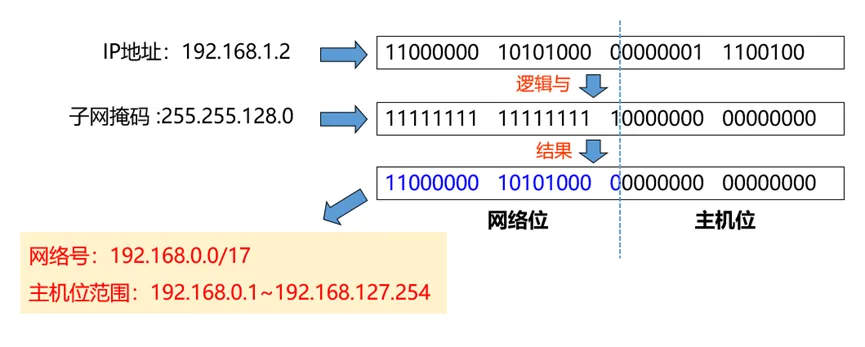 通过IP地址与子网掩码的“与运算”,可得到网络号: