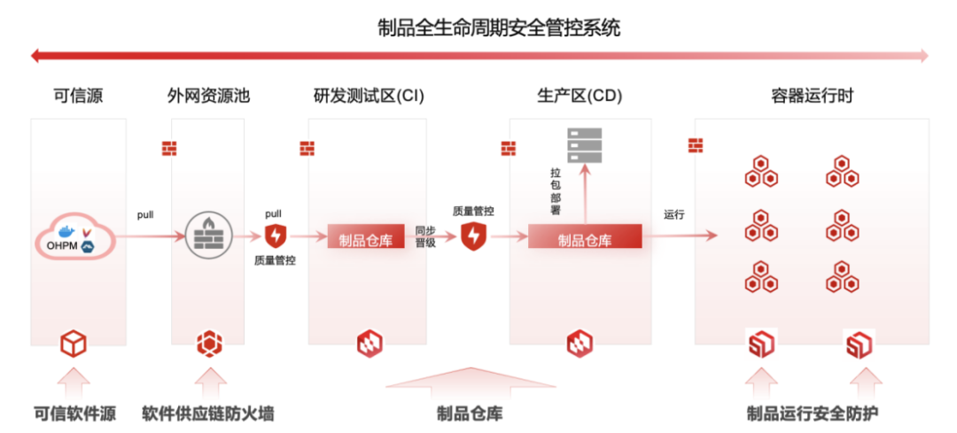 为应对数字化转型中云原生应用规模扩大带来的软件供应链安全问题,某银行联合小佑科技构建了云原生制品全链路管控系统。该系统以云原生应用流转为核心,整合多语言协议、多类型仓库、制品存储、流转、依赖分析、运行监测及响应处置等能力,覆盖制品“获取-管控-流转-运行”全生命周期。