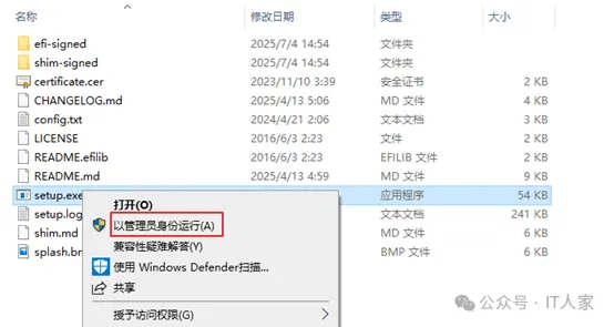 右键 setup.exe 应用程序文件,并以管理员身份运行: