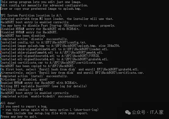 程序会将Logo图片写入系统引导配置文件中,安装完成后,按任意键退出即可: