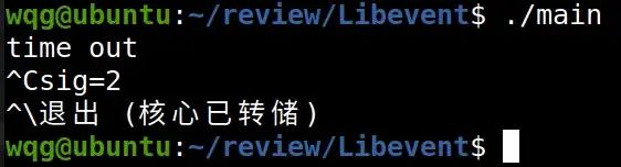示例一:简单使用Libevent注册信号事件以及定时事件由于上述代码中并没有将注册的事件变为永久事件,因此一次之后就结束了,所以程序运行结果如下: