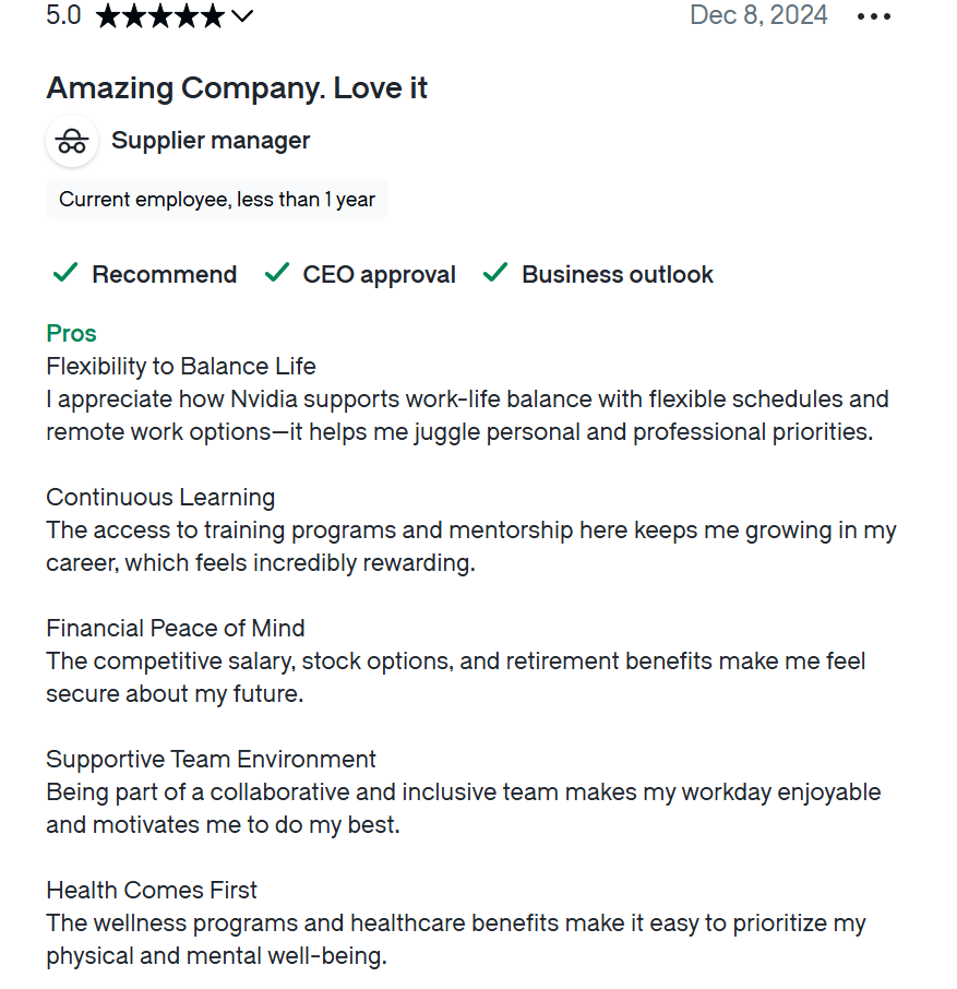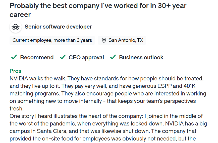 另一位工作三十年之久的软件工程师说,英伟达是他供职过最好的公司。