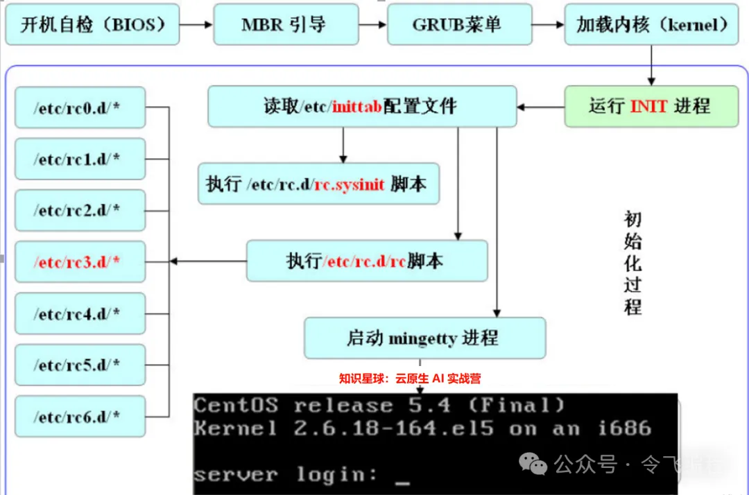 7. 启动第七步:加载内核模块init 根据 /etc/modules.conf 或 /etc/modules.d 下的配置文件,调用 modprobe 自动装载所需内核模块。