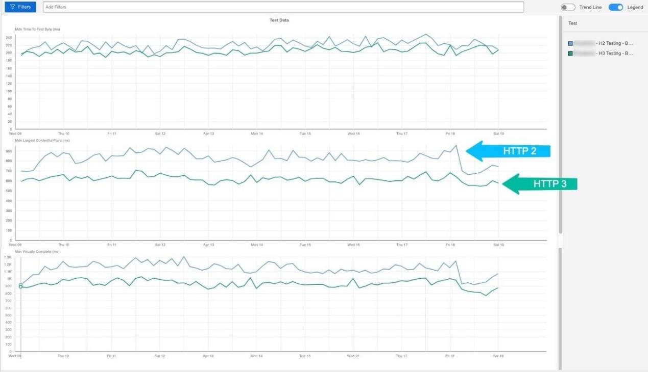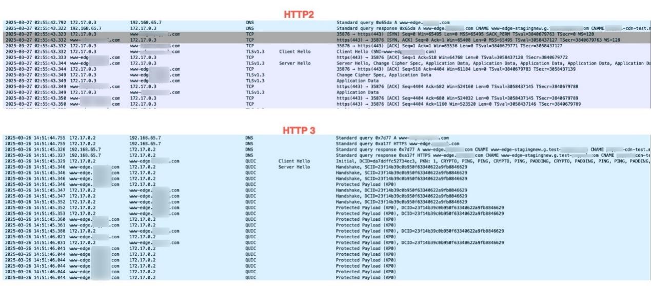 Chrome和Firefox都能够支持这种回退机制。而Microsoft Edge相对保守,可能需要手动启用HTTP/3或实验性设置,才能进行一致性的测试。让我们再从性能方面进行考虑: