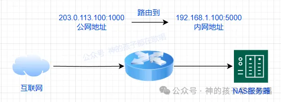 那么只要你在外面访问 203.0.113.100:1000,路由器就知道“哦,这个请求是给 NAS 的”,然后就能转过去。